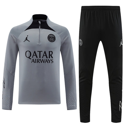 PSG Paris Saint German Long Sleeve Tracksuit Grey/Black 2022-23